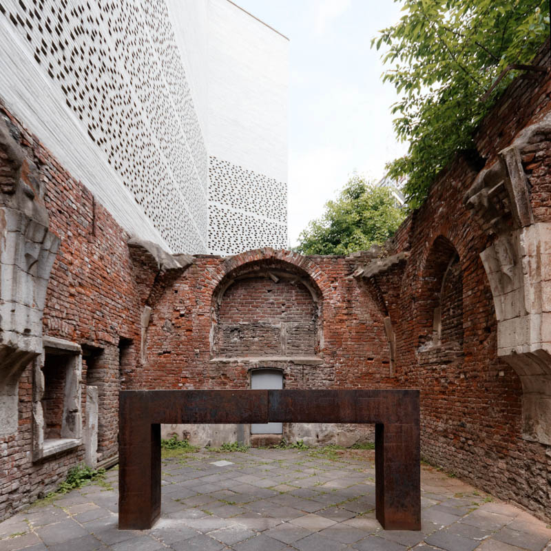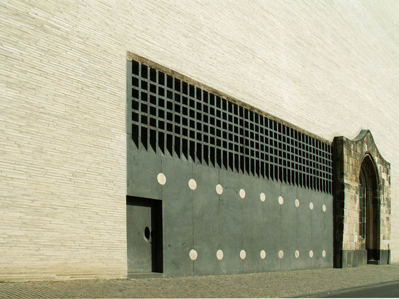 Kolumba Art Museum in Cologne, Germany, was finished in 2007. It is built around and upon the ruins of a Gothic church at the site and a 1950s chapel.